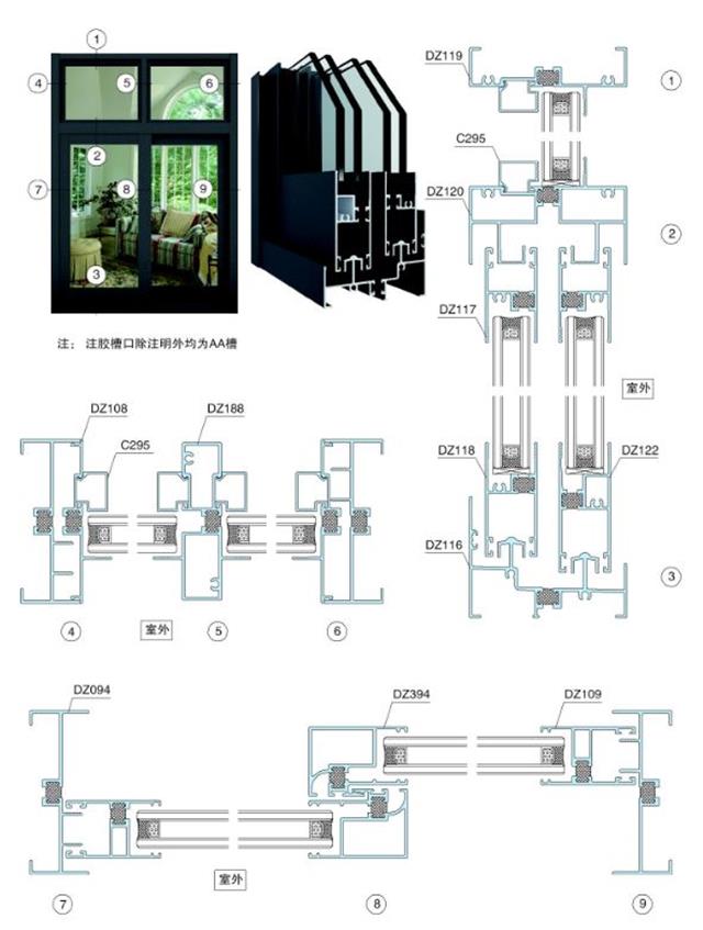 H80C系列隔热节能推拉窗结构图